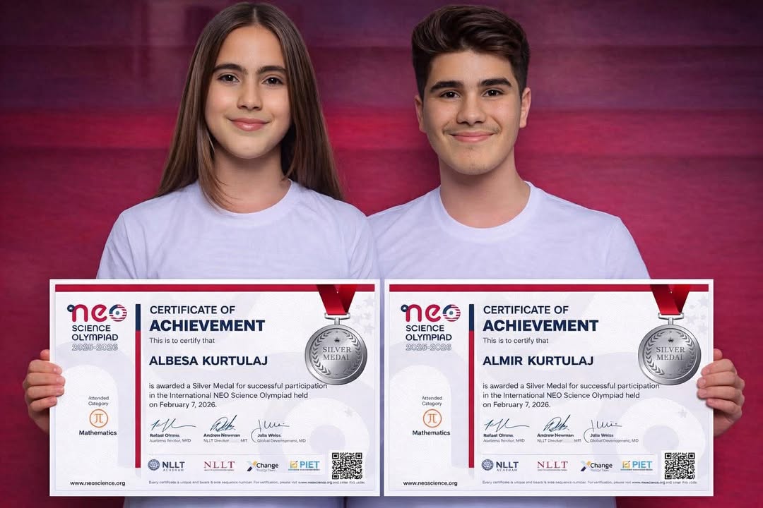 Albesa dhe Almir Kurtulaj, motër e vëlla, kanë arritur një sukses të jashtëzakonshëm duke u kualifikuar për finalen e madhe ndërkombëtare Neo Science Olympiad, e cila do të mbahet në muajin gusht në NEW YORK, Shtetet e Bashkuara të Amerikës.