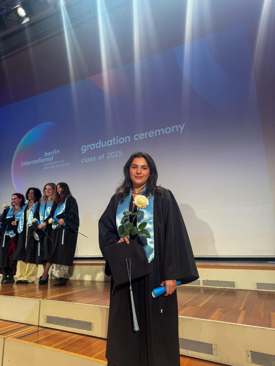 Dua Ramaxhiku, arkitektja e re mitrovicase që diplomoi sot në Berlin me temën “Kalaja e Mitrovicës”.