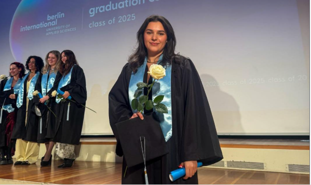 Dua Ramaxhiku, arkitektja e re mitrovicase që diplomoi sot në Berlin me temën “Kalaja e Mitrovicës”.