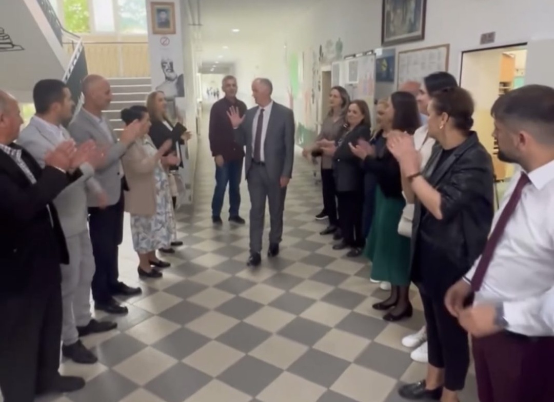 Kalimin në pension të profesorit Rekaliu, kolegët e shkollës së mesme “Isa Boletini”, në Podujevë, e kanë pritur me emocione.