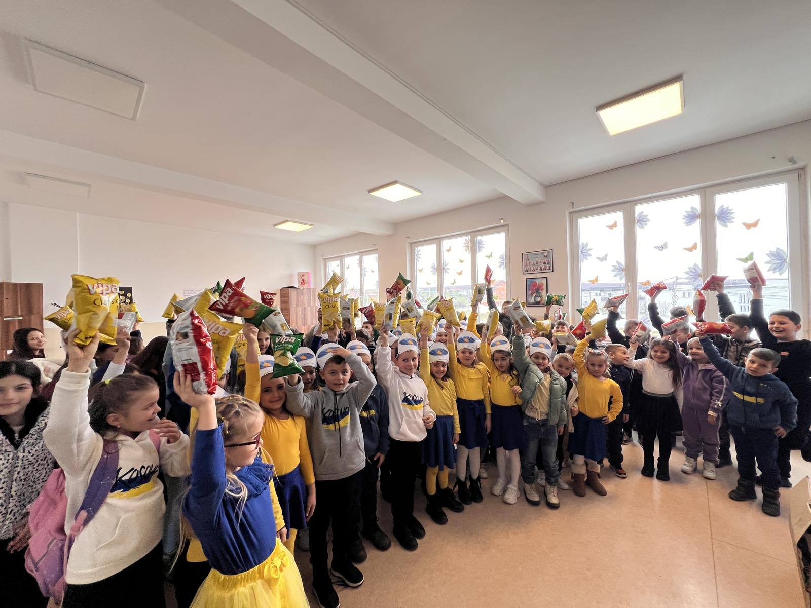 Afër 100 nxënës nga klasa parashkollore deri te pestë u surprizuan me dhurata simbolike – çipsa të ofruara nga kompania vendore Vipa Chips.