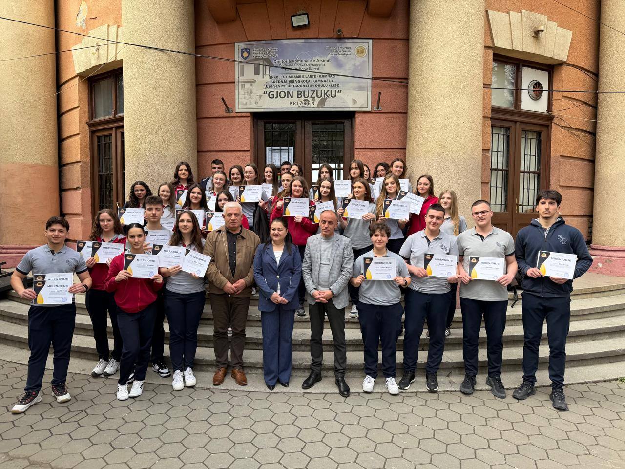 Në kuadër të aktiviteteve të organizuara për shënimin e Ditës së Shkollës në Gjimnazin “Gjon Buzuku” në Prizren, u organizua edhe ceremonia e shpërndarjes së mirënjohjeve për nxënësit, mësimdhënësit dhe bashkëpunëtorët që kontribuan në realizimin dhe suksesin e aktiviteteve të kësaj dite të veçantë.