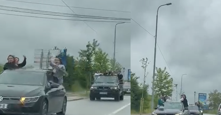 Në video shihen te kenë dalë nga dritaret e veturave që janë në lëvizje.