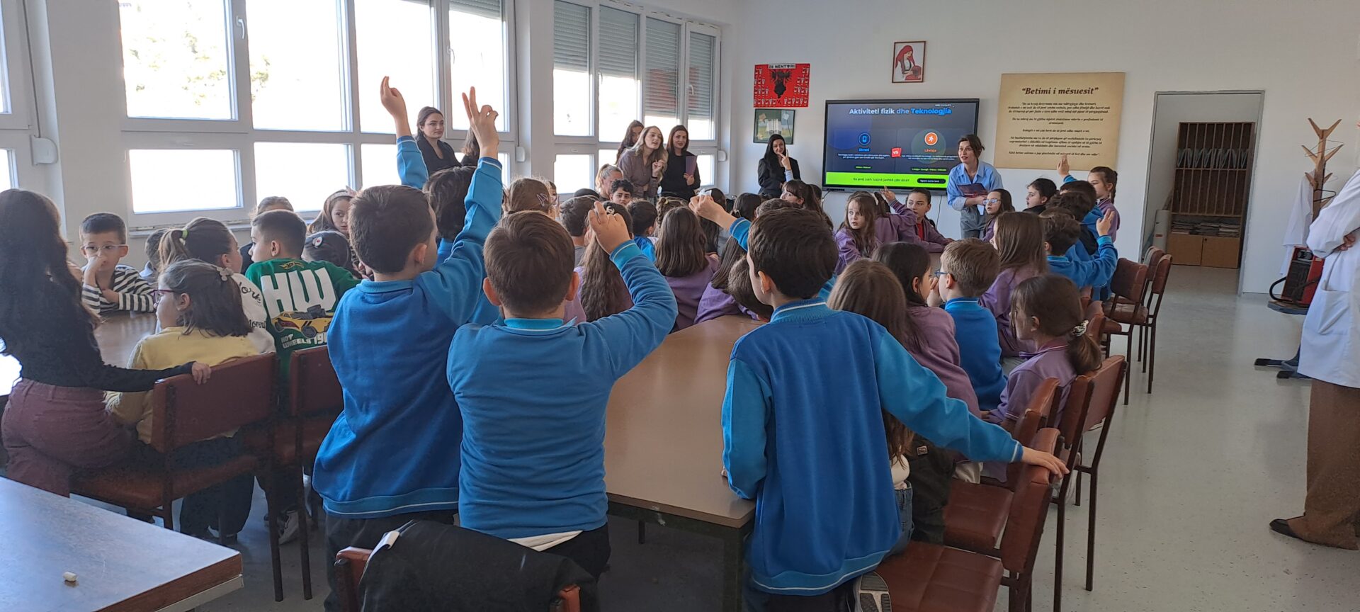 Atmosfera gjatë aktivitetit ishte shumë dinamike, me nxënësit që morën pjesë aktivisht duke iu përgjigjur pyetjeve dhe duke ndarë përvojat e tyre rreth lojës dhe aktiviteteve fizike.