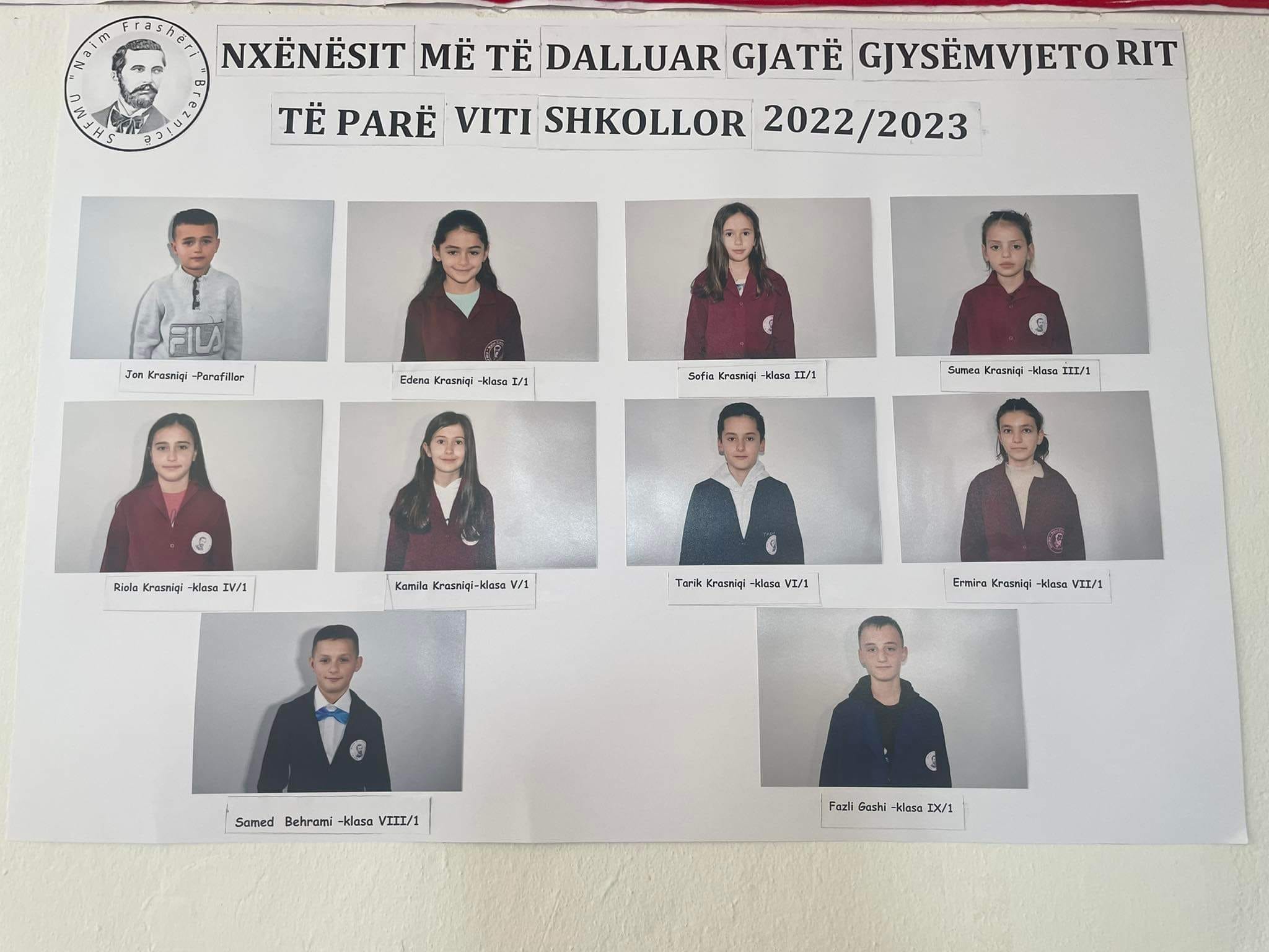 Nxënësit më të dalluar gjatë gjysëmvjetorit të parë , viti shkollor 2022/23