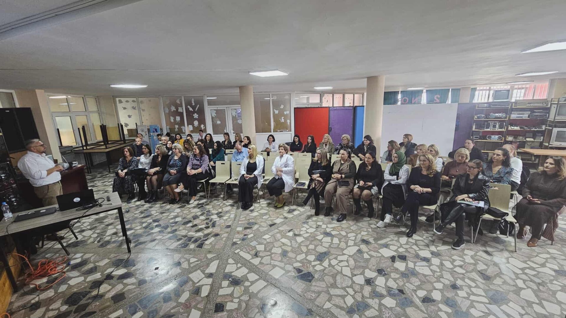 Mësimdhënësit pjesëmarrës ndoqën me vëmendje prezantimin dhe parashtruan pyetje të shumta, të cilave psikologu iu përgjigj me profesionalizëm.