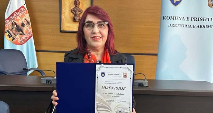 Mësuesja Fluturë Shala-Selmani nga shkolla “Ali Kelmendi” në Barilevë është nderuar me mirënjohje nga Komuna e Prishtinës për kontributin dhe përkushtimin e saj në fushën e arsimit, shkruan AlbanianEducation.net.