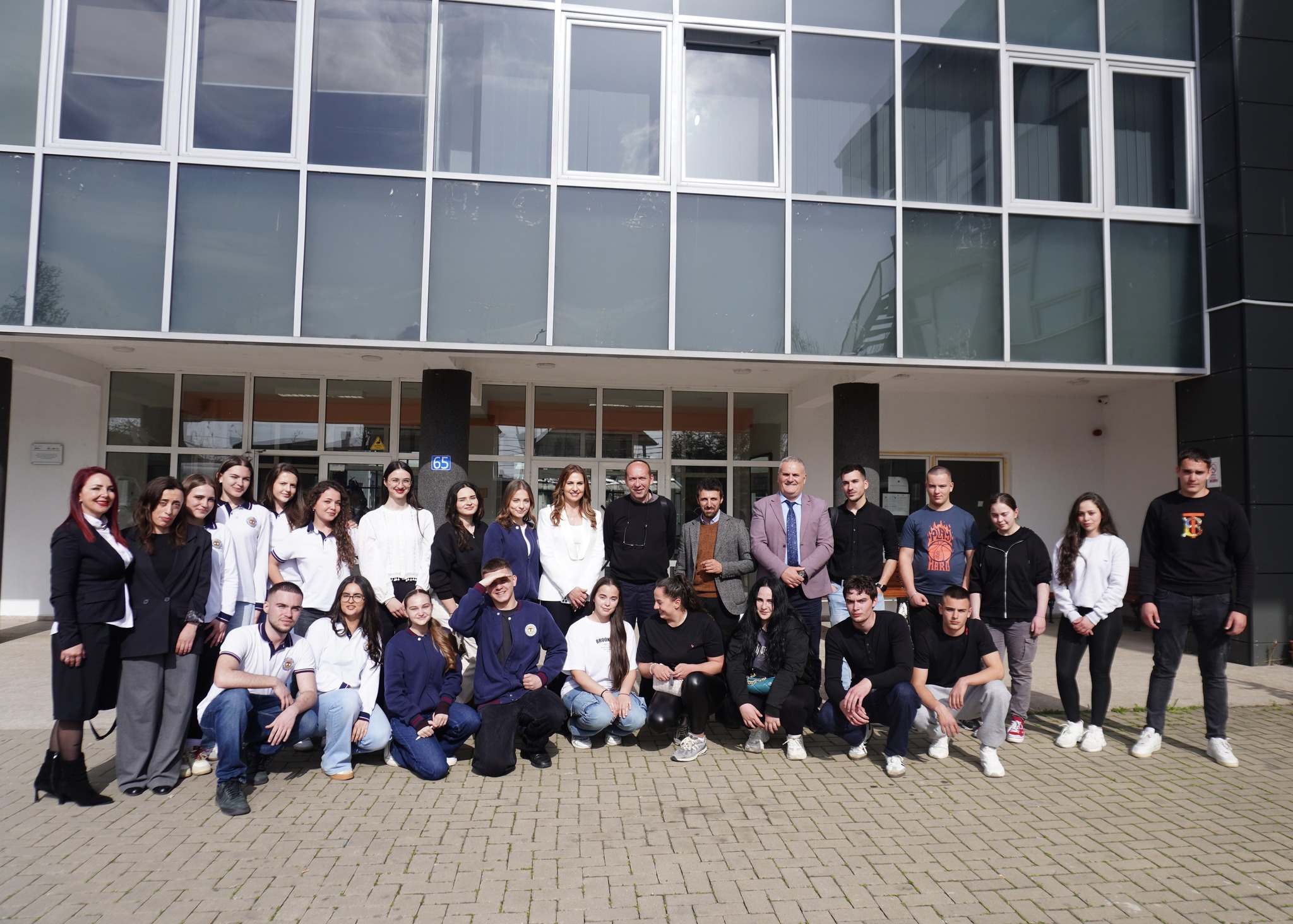 Më datë 14.04.2026, patëm kënaqësinë të mirëpresim nxënësit dhe mësimdhënësit nga Shkolla e Mesme “Nikolla Teslla” nga qyteti i Medvegjës në ambientet e shkollës sonë – një vizitë që shkoi përtej një aktiviteti të zakonshëm dhe mori një vlerë të veçantë edukative dhe shoqërore.