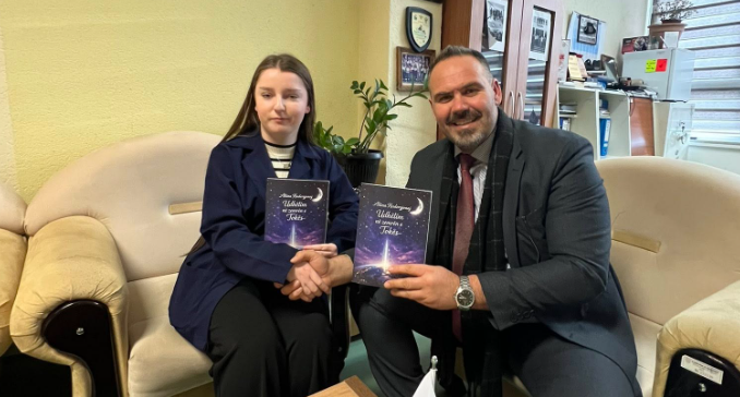 Nxënësja e dalluar Altina Haderxhonaj i dorëzoi drejtorit të Gjimnazit “Vëllezërit Frashëri”, dy libra të autorësisë së saj, shkruan AlbanianEducation.net.