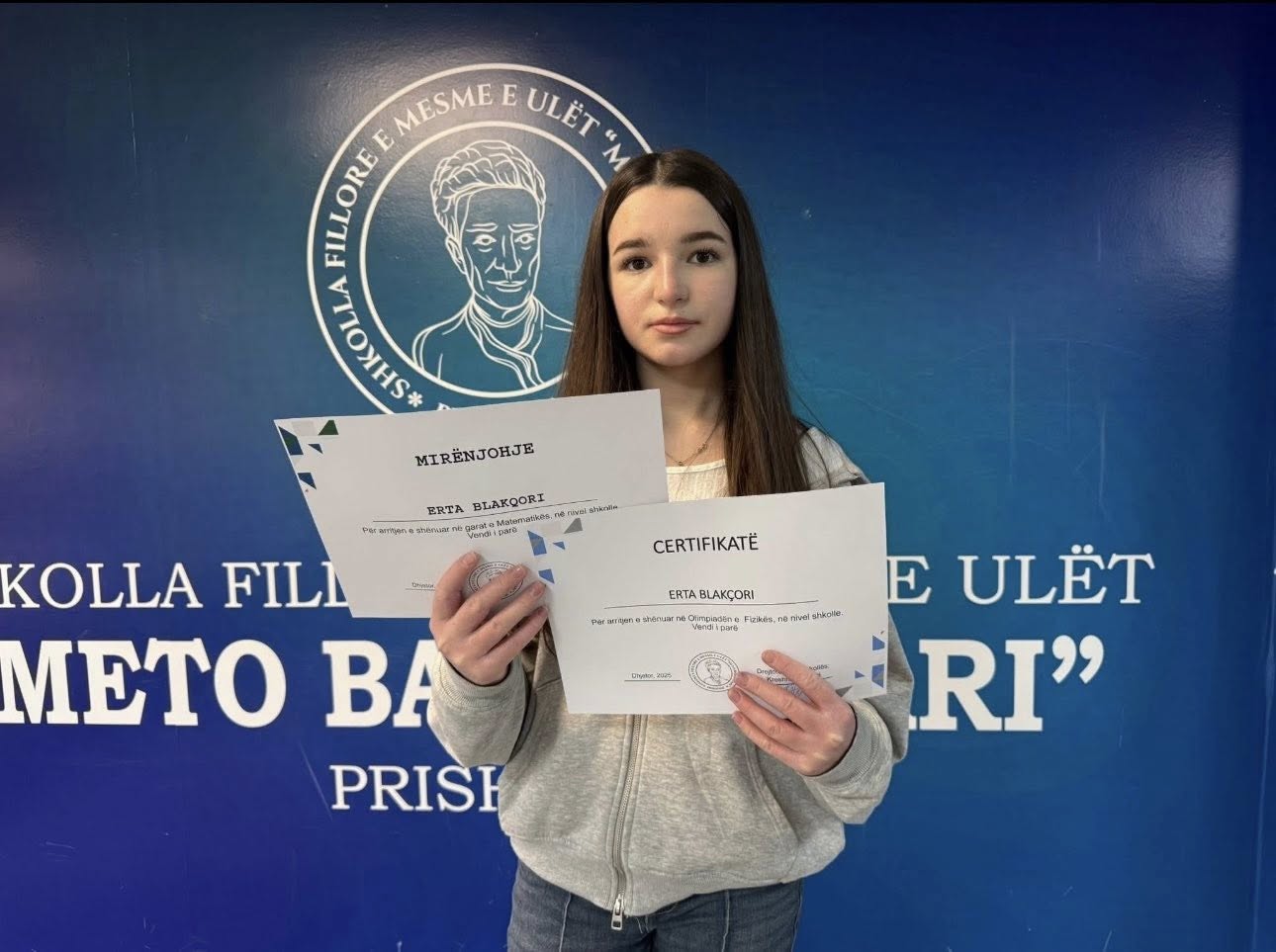 Nxënësja Erta Blakçori e shkollës “Meto Bajraktari” në Prishtinë është renditur e treta në lëndën e Fizikës në nivel shtetëror, duke dëshmuar përkushtim, dije dhe punë të palodhur.