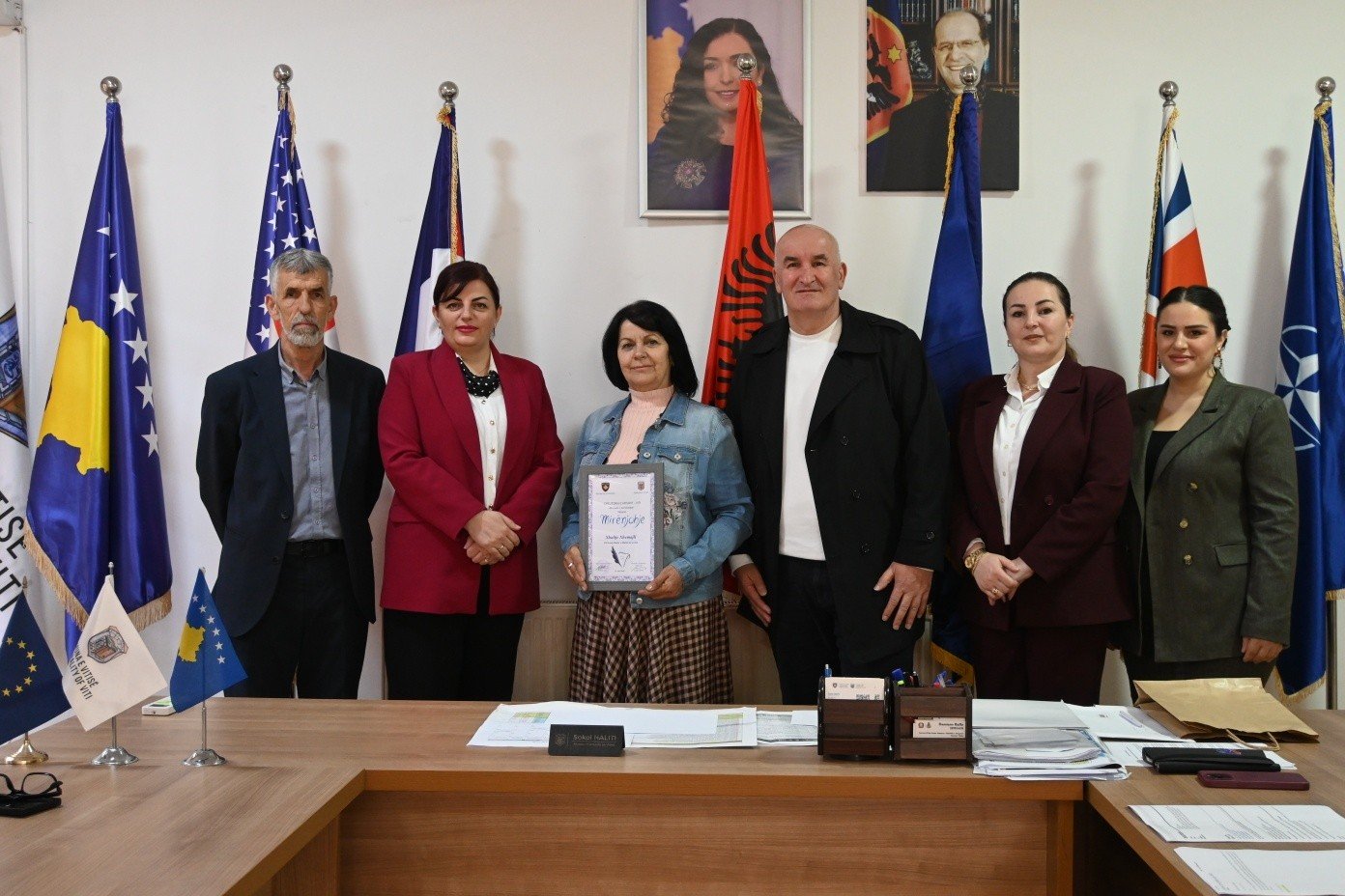 Me këtë rast, kryetari Sokol Haliti i ndau Xhemajlit edhe një mirënjohje, si shenjë vlerësimi për punën dhe përkushtimin e saj shumëvjeçar në fushën e arsimit.