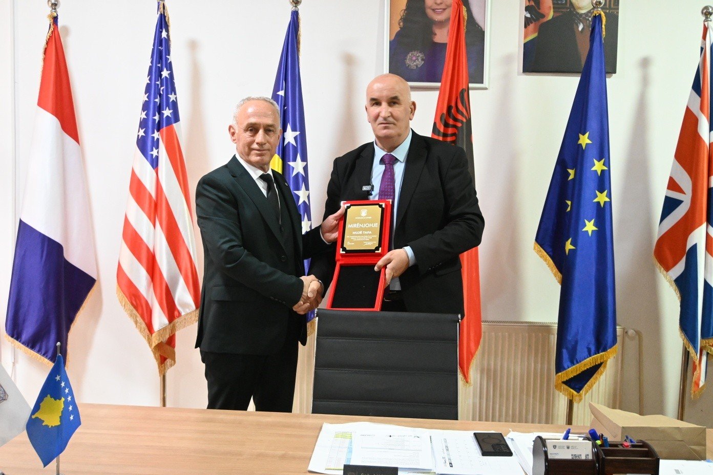 Në shenjë falënderimi për punën dhe angazhimin e palodhshëm në ngritjen e cilësisë së arsimit vitias, kryetari Haliti i ndau drejtorit Tafa një mirënjohje.