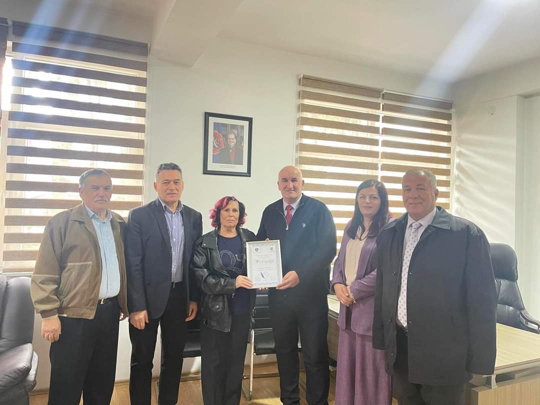 Kryetari Sokol Haliti i ndau një mirënjohje për kontributin e saj të dhënë në arsim.