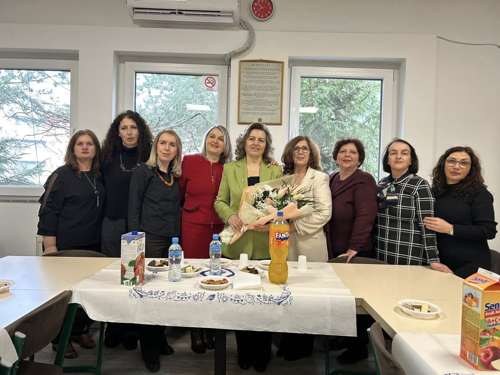 Me këtë rast, në ambientet e shkollës u organizua një ceremoni përshëndetëse, ku ajo u përcoll nga stafi drejtues, kolegët dhe familjarët.