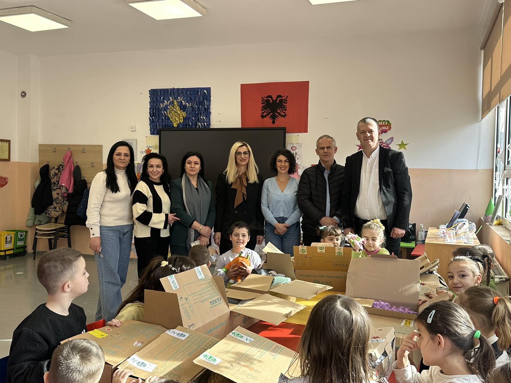 Sot me stafin tim vizituam ” SHFMU. “Ganimete Tërbeshi” Llukar, Prishtinë, ku në kuadër të bashkëpunimit me Organizatën Gjermane ADRA, u realizua ndarja e pakove me mjete pune për fëmijët e vegjël – donacion i përbashkët i shkollës sonë dhe ADRA-s për shkollën pritëse.