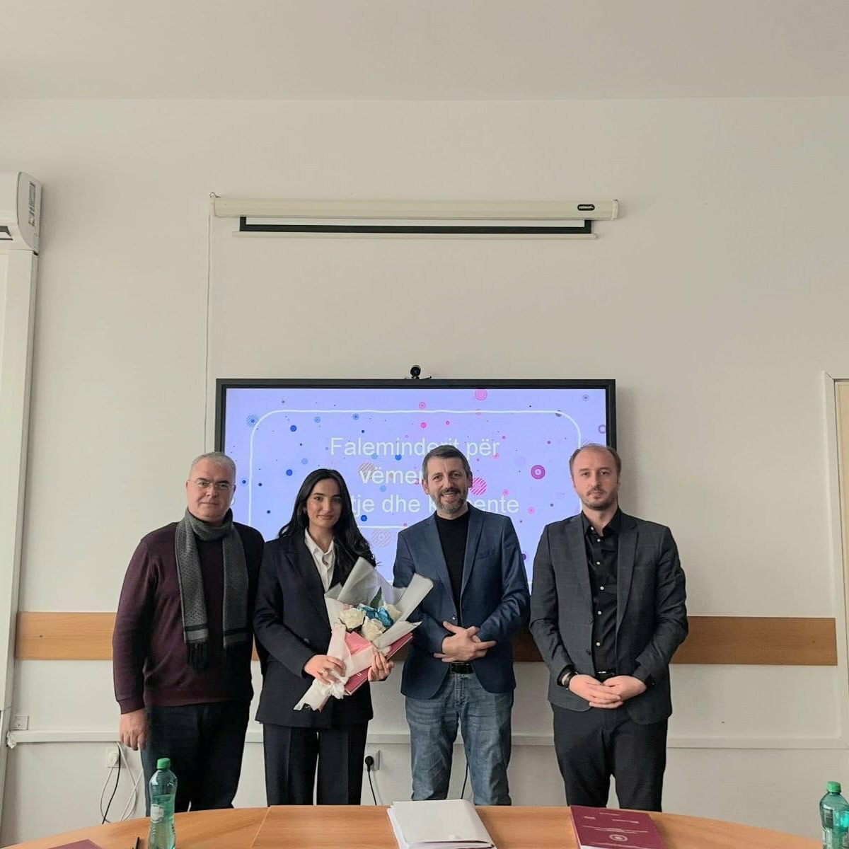 Studentja Doresa Geci ka mbrojtur me sukses temën e saj të diplomës Master “Gazetarët ndërmjet djegies profesionale dhe kënaqësisë në punë: Rasti i Kosovës”, nën mentorimin e prof. Arben Fetoshi.