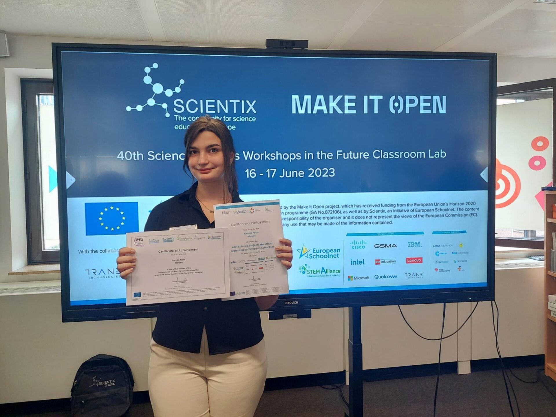 Ka përfunduar me sukses kompeticioni ndërkombëtar i organizuar nga European Schoolnet në Bruksel në Future Classroom Lab, ku stunentja nga Shqipëria, Alessia Pepa është një ndër 6 fituesit e projektit “Professionals Go Back To School”, shkruan Albanian Education.